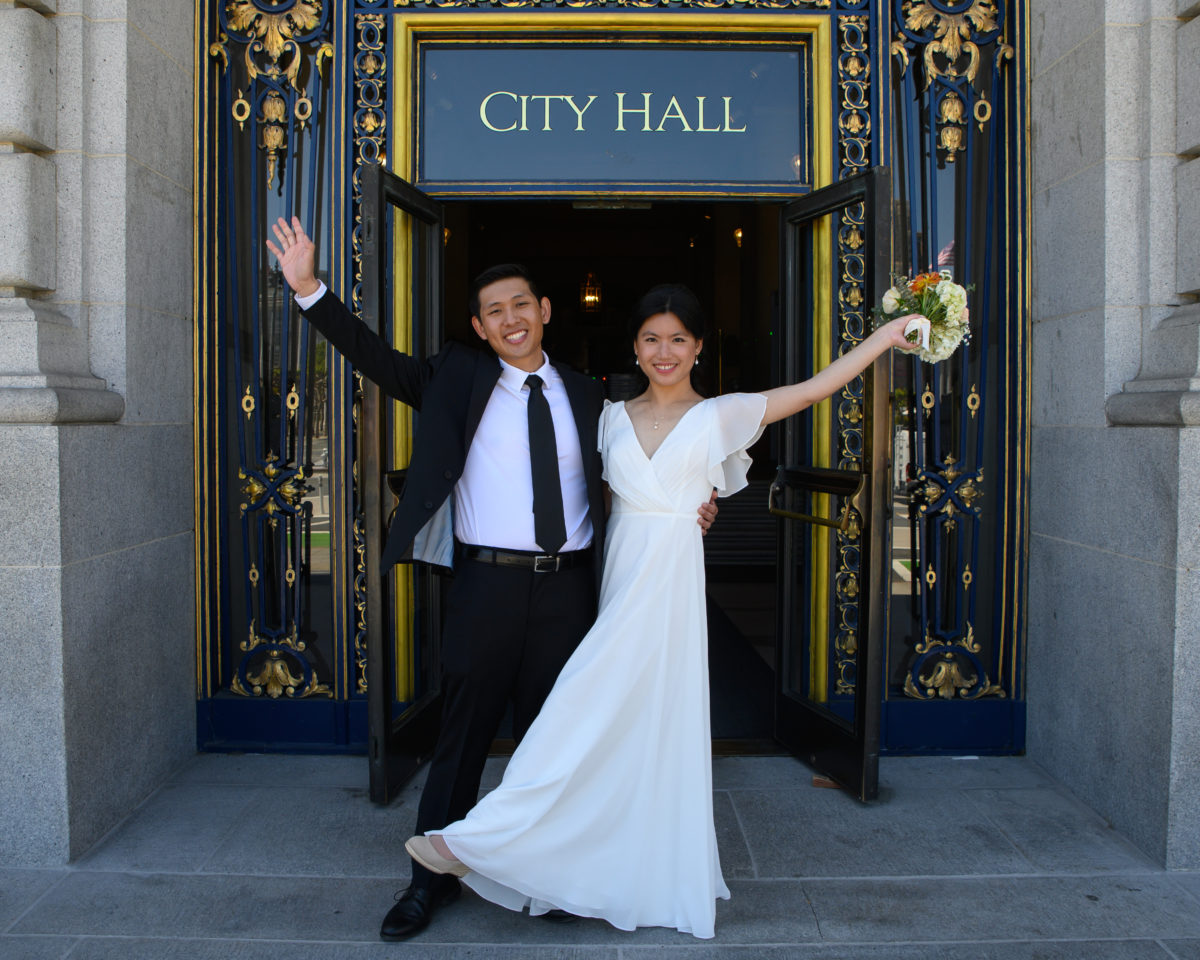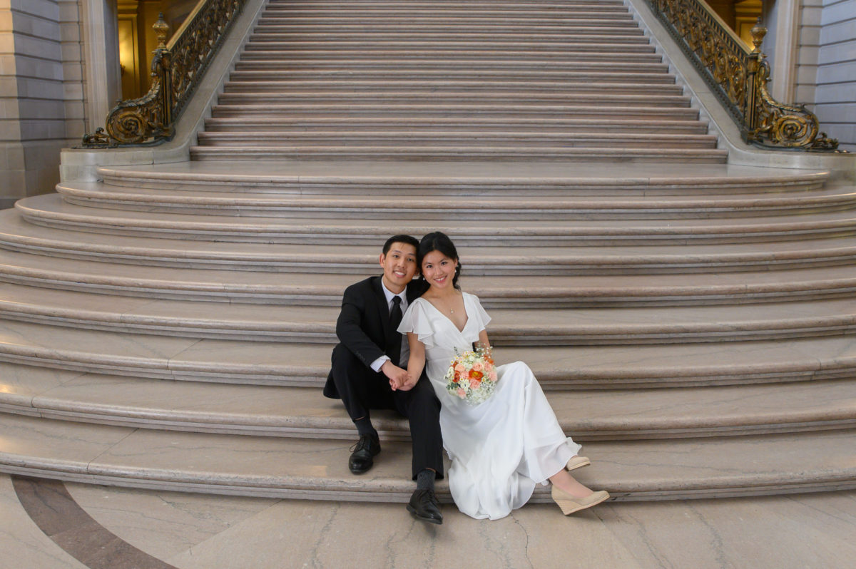 • Experience with All Types of Brides and Grooms – elopement weddings are becoming increasingly popular these days. The cost and time involved in organizing a large wedding can be prohibitive for many brides and grooms. Especially with the high Bay Area pricing. Couples that choose an elopement are probably going to want more interactive and candid types of photos. They have opted to not have a formal wedding so chances are they don’t want stiff and rigidly posed wedding pictures. San Francisco City Hall elopement fits in well with this type of couple. After their civil ceremony is completed, the eloping couple has plenty of time to spend with their City Hall wedding photographer wandering around the building capturing informal and fun pictures. We service a very diverse clientele and learn new things almost every shoot we do.